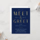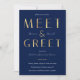 Create stylish networking event invites for your business with this elegant faux gold Meet & Greet Invitation design. This navy blue and gold effect company invite is great to use for social company events, dinner & drinks events and more. Featuring bold gold typography design and dark navy background, this business event marketing flyer allows you to edit the event details and background color so you can tailor it to suit your brand and event aesthetic.