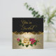 Invitation Anniversaire Fête Élégante N'Importe Quel Événement Fête Café Crème Rouge Rose Noir Or Roses Floral Fleurs Image Trim