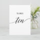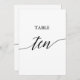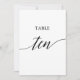 Cet élégant noir 5x7" table imprimable dix numéro de table est parfait pour un mariage simple. Le design neutre présente une carte minimaliste décorée de typographie romantique et fantaisiste. La carte s'imprime à l'avant et à l'arrière (double face). Les autres numéros de tableau de la collection sont vendus séparément.
