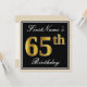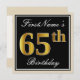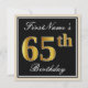Ces caractéristiques de conception simples et élégantes d'invitation de fête d'anniversaire un message personnalisé comme "le soixante-cinquième anniversaire de FirstName" (avec le "soixante-cinquième" ayant un faux/imitation or-comme le regard de coloration) dans un secteur carré noir-coloré comportant un contour simple. Le nom dans un élégant blanc-est coloré manuscrit-comme le texte, et peut être customisé. Le dos comporte les détails personnalisables d'invitation. Une invitation de fête d'anniversaire comme ceci pourrait peut-être être employée en invitant des personnes à une fête d'anniversaire étant tenue pour quelqu'un qui célèbre leur soixante cinquièmes anniversaires. [~Z0000224]