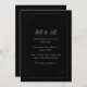 Donnez le ton d'une fête intemporelle avec cette "Elégante Faire-part de mariage Noir avec Bordure Défilée". Doté d'un arrière - plan noir profond accentué par des détails de défilement gris et doux dans chaque coin et d'un cadre à bordure mince, ce design respire le raffinement et le charme vintage. Parfait pour les événements de cravate noire, les cérémonies officielles ou les mariages du soir, la mise en page gracieuse met en valeur vos détails personnalisés dans un élégant script gris. Entièrement personnalisable pour refléter votre style mariage.