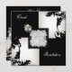 Invitation Elégant noir blanc floral chèque bijou perle