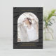 Cette faire-part moderne de deux diplômes de photo comporte un élégant arrière - plan noir et une grande typographie avec une arche de photo géométrique avant, et une photo complète au dos de la carte.