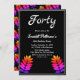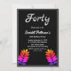 Invitation Elégant noir et blanc brillant Feuilles 40e annive