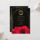 Invitation Élégant Noir et Rouge Or Laurel Initiales