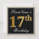 Invitation Elégant, Noir, Faux Or 17ème Anniversaire + Nom