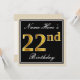 Invitation Elégant, Noir, Faux Or 22ème Anniversaire + Nom