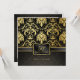 Belles invitations d'anniversaire de mariage de 50 ans en noir et or métallisé avec motif damassé vintage. Avec motif damassé noir et gris. Célébration du cinquantième anniversaire de mariage.