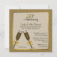 Élégante invitation de fête d'anniversaire de mariage cinquantième réalisée dans un magnifique motif de tourbillon de ton doré et une zone de texte semi-transparente à bordure dorée, au milieu. Des graphiques de deux verres à champagne terminent cette invitation époustouflante. Le texte en noir et jaune doré est entièrement personnalisable pour répondre aux besoins de votre événement. Invitation charmante pour ce jour spécial.