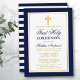 Elégant Bleu et Or Première Sainte Communion Invitation avec Croix. Refusé.