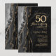 Invitation de célébration du 50e anniversaire à surprise en agate noire et or. Design moderne élégant avec fond de géode en marbre d'agate aquarelle, or pailleté faux et police de caractères script. Carte d'invitation élégante parfaite pour une fête d'anniversaire de mariage chic. Invitations Zazzle imprimées ou modèle numérique téléchargeable instantanément.
