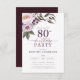 Invitation Élégant Plum violet Script floral 80e anniversaire