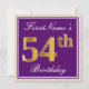 Invitation Elégant, pourpre, Faux Gold 54e anniversaire + Nom