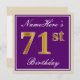 Invitation Élégant, pourpre, Faux Gold 71e anniversaire + Nom