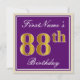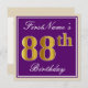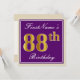 Invitation Elégant, pourpre, Faux Gold 88e anniversaire + Nom