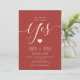 Calligraphie simple, élégante invitation à la fête d'engagement rouge avec un coeur faux or mignon et monogramme plein nom à l'arrière.