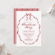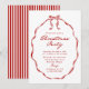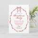 Host your holiday celebration in style with this elegant Christmas party invitation featuring a hand-drawn red ribbon frame with a bow at the top. “Christmas Party” is displayed in a graceful red calligraphy script with your party details below. The classic red-and-white color palette and vintage-inspired lettering create a timeless design, complemented by a striped pattern on the back. Perfect for both casual gatherings and formal Christmas soirées.