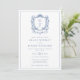Invitation Élégant Rose Bleu Monogram Crest Mariage