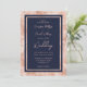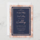 Invitations de mariage en or bleu marine moderne et rose avec une police de caractères de script moderne. Personnalisez facilement en ligne.