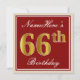 Invitation Elégant, Rouge, Faux Gold 66e anniversaire; Nom pe