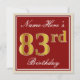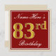 Invitation Elégant, Rouge, Faux Gold 83e anniversaire; Nom pe