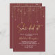 Caractéristique design Parties scintillant étincelante rideau or et moderne élégante Typographie de script "Elle l'a fait!" avec l'arrière - plan rouge bourguignon classique