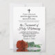 Unissez-vous dans l'amour et la foi avec cette belle faire-part de mariage ! Parfait pour une cérémonie catholique moderne, cet invitation étonnant est doté d'un seul rose orange rouille à longue tige, reflétant élégamment dans l'eau. Complète par une croix ou un crucifix, cette invitation adresse une chaleureuse invitation à vos invités à se joindre à vous dans une joyeuse messe nuptiale, célébrant le sacrement du mariage saint. Embrassez la tradition formelle et le style moderne lors de votre journée spéciale, et invitation vos amis et votre famille pour partager votre bonheur avec cette invitation parfaite.