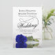 Cette belle faire-part de mariage est ornée d'une superbe photo d'un seul rose à long tige bleu royal ou cobalt couché sur son côté, se reflétant dans un bassin d'eau avec vagues et ondulations. Le design se compose d'un script de calligraphie sophistiqué avec une longue queue bouclée, ce qui le rend à la fois moderne et classique. Une façon élégante, sophistiquée et chic d'invitation vos amis et votre famille à partager dans votre journée spéciale. Le verso de la carte contient un code QR pour votre site mariage et une brève note demandant aux gens de visiter le site pour plus de détails et RSVP.