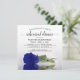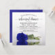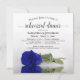 Cette belle invitation à dîner de répétition mariage comprend une photo d'un seul rose à long tige bleu royal ou couleur cobalt allongé sur son côté, réfléchissant dans un bassin d'eau avec vagues et ondulations. L'élégant titre de calligraphie script prête classe et style. Inclut des informations sur la répétition et le dîner. Une façon parfaite de tenir la fête de mariage informé tout en les remerciant d'avoir fait partie de votre journée spéciale.