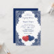 Invitation Elégant Rustic Navy Mariage bleu et rouge floral