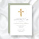 Invitation Elégant Sage Green Confirmation de croix religieus