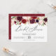 Célébrez la future mariée avec de belles fleurs d'aquarelle rose et bordeaux avec un élégant script noir. Vous pouvez customiser le libellé et le thème de couleur sur cet invitation de douche nuptiale.