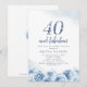 Parties scintillant moderne chic faux bleu "40 et fabuleux" script, design floral tendance couleur bleu glace, élégant et élégant, grandes invitations de fête de 40e anniversaire.