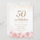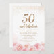 Modern chic "50 and fabulous script, trendy faux gold glitter and blush pink watercolor floral design, elegant and stylish, great 50th birthday party invitations.