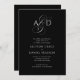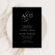 Élégant Script initial Monogram Faire-part de mariage noir caractéristiques typographie magnifiquement classique jumelé avec un élégant écran de script sur un délicat arrière - plan bleu marine profond.