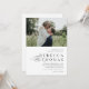 Un faire-part de mariage photo classique noir et blanc avec photo horizontale et élégant script de calligraphie et texte propre éditable. Cliquez sur le bouton Modifier pour customiser cette conception.