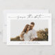 Une photo de script élégante enregistrer la date avec une photo horizontale et un texte minimal. Cliquez sur le bouton Personnaliser pour customiser cette conception.