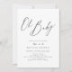 Design minimaliste "oh bébé" moderne en noir et blanc fusain, simple et élégant. Grandes invitations de douches pour bébé minime Voir toutes les pièces correspondantes dans la collection