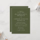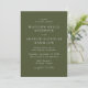 Invitation vos invités dans le style avec cet élégant faire-part de mariage vert olive, avec les noms complets du couple et les détails mariages en lettres blanches et croustillantes. Des touches de calligraphie sophistiquées apportent une touche moderne à l'arrière - plan terreux vert olive, créant un design intemporel et raffiné. Parfait pour les mariages en toute saison, cette invitation allie élégance classique et charme contemporain.