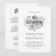 Cette élégante faire-part de mariage en noir et blanc conviendra parfaitement à une mariage moderne. Le design simple présente une élégante calligraphie noire sur un arrière - plan blanc propre. La carte d'invitation comprend les détails du mariage au dos au lieu de payer une carte d'enceinte séparée.