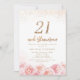 Écriture moderne chic "21 et glamour", parties scintillant en faux or tendance et aquarelle rose rousse design floral, élégante et élégante, grandes invitations de fête de 21e anniversaire.