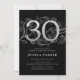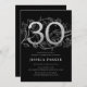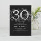 Elégante invitation de fête de 30e anniversaire en argent noir. Design féminin moderne et personnalisable avec des accents botaniques rose et de la fausse parties scintillant argent. Carte invitation florale simple parfaite pour une célébration anniversaire élégante. Personnalisez avec vos propres détails. Invitations Zazzle imprimées ou téléchargement instantané modèle imprimable numérique.