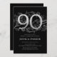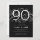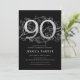 Elégante invitation de fête de 90e anniversaire en argent noir. Design féminin moderne et personnalisable avec des accents botaniques rose et de la fausse parties scintillant argent. Carte invitation florale simple parfaite pour une célébration anniversaire élégante. Personnalisez avec vos propres détails. Invitations Zazzle imprimées ou téléchargement instantané modèle imprimable numérique.