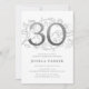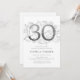 Elégante invitation à la fête du 30e anniversaire en argent blanc. Design féminin moderne et personnalisable avec des accents botaniques rose et de la fausse parties scintillant argent. Carte invitation florale simple parfaite pour une célébration anniversaire élégante. Personnalisez avec vos propres détails. Invitations Zazzle imprimées ou téléchargement instantané modèle imprimable numérique.