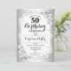 Elégante invitation à 50e anniversaire fleurie avec votre photo au verso de la carte. Design de glam avec faux argent. Comprend des roses blanches, des caractères de script et des confettis. Parfait pour une fête anniversaire adulte élégante. Personnalisez avec vos propres détails. Peut être customisé pour n'importe quel âge ! Invitations Zazzle imprimées ou téléchargement instantané modèle imprimable numérique.