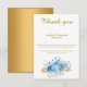 INVITATION ÉLÉGANT SIMPLE BLEU FLEUR OR MERCI ENVERS