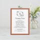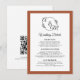 Réception de mariage, hébergement d'hôtel et détails du site avec code QR (ou supprimer des champs si nécessaire). Design simple, élégant et moderne de carte mariage avec une bordure orange brûlée, vos initiales monogrammes et votre texte d'invitation. À l'envers, il y a le code QR. Cette conception a été créée à partir de feuilles feuillues dessinées à la main conception de couronnes pour un cadre monogramme contemporain avec une calligraphie Ampersand. Graphiquement conçu par Audrey Jeanne Roberts, artiste et designer de renommée internationale, copyright.