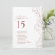 Illustration délicate à main élégante et détails de typographie de script moderne, en terre cuite et couleur blanche, simple et romantique. Grande table à mariage floral nombre de sièges pour mariage rustique moderne, mariage de jardin de campagne, et mariage boho simple en automne et en hiver. Entièrement personnalisable avec n'importe quelle couleur pour correspondre à votre thème mariage. Voir toutes les pièces correspondantes dans la collection.