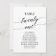 Ces élégantes cartes de table noire numéro 21 sont parfaites pour un mariage simple. Le design neutre présente une carte minimaliste décorée de typographie romantique et fantaisiste. La carte s'imprime à l'avant et à l'arrière (double face).