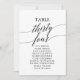 Ces élégantes cartes de table noire numéro 34 sont parfaites pour un mariage simple. Le design neutre présente une carte minimaliste décorée de typographie romantique et fantaisiste. La carte s'imprime à l'avant et à l'arrière (double face).
